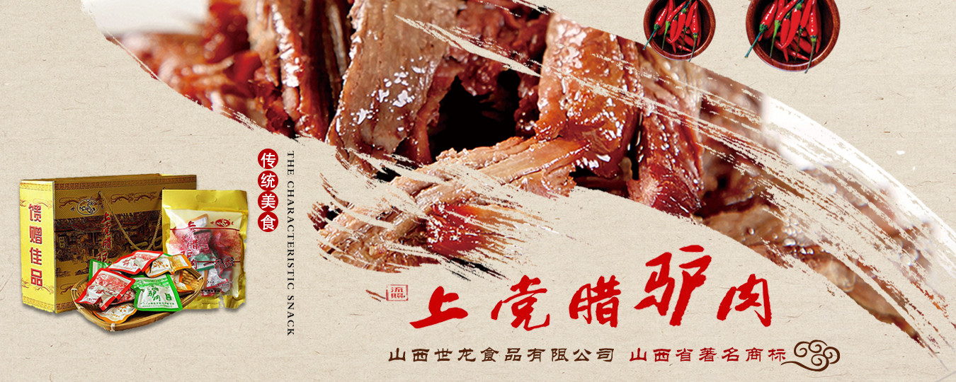 山西世龍食品有限公司是以“世龍”牌上黨臘驢肉系列產(chǎn)品為主導(dǎo),集科研開(kāi)發(fā)、良種繁育、基地建設(shè)、生產(chǎn)加工、市場(chǎng)營(yíng)銷于一體的農(nóng)業(yè)產(chǎn)業(yè)化國(guó)家重點(diǎn)龍頭企業(yè)、全國(guó)農(nóng)業(yè)標(biāo)準(zhǔn)化示范區(qū)、全國(guó)食品行業(yè)優(yōu)秀龍頭企業(yè)、山西省農(nóng)業(yè)產(chǎn)業(yè)化重點(diǎn)龍頭企業(yè)、山西省農(nóng)產(chǎn)品加工“513”工程單位、山西省帶動(dòng)貧困地區(qū)基地建設(shè)重點(diǎn)龍頭企業(yè)、山西省民營(yíng)畜牧業(yè)示范基地、山西省質(zhì)量信譽(yù)AAA級(jí)單位、山西省重合同守信用單位、山西省消費(fèi)者協(xié)會(huì)誠(chéng)信單位、山西省民營(yíng)科技企業(yè)。